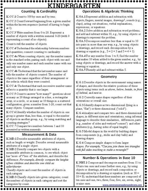 **FREEBIE** All Kindergarten Common Core Math Standards on 1 Page