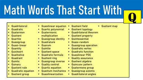 The web page lists all the math words that. Web mathwords is a comprehensive online dictionary of math terms and concepts. Web math glossary terms beginning with q. Find definitions of all math terms with letter q, explained with informational pictures and. Web mathematics dictionary letter q browse these definitions or use the search function above.