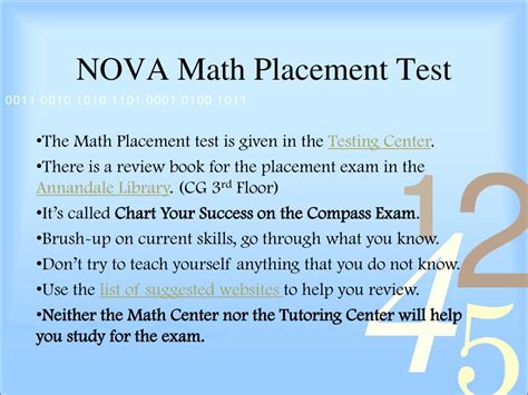 Nova Math Placement Test. Nova administers tests to assess an individual’s college readiness and placement in certain courses. Web provides study guides and practice tests for improving math & english language skills, and program placement and professional certification/licensure exams.