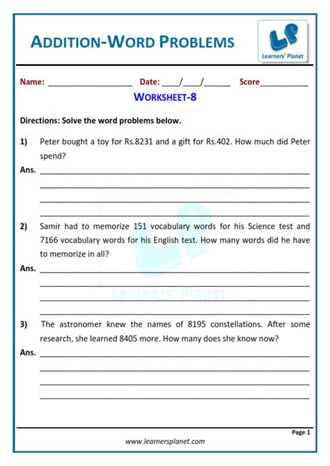 Math Worksheets For Grade 3 Addition And Subtraction Word Problems