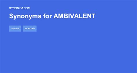 “was ambivalent about having children”. Words related to ambivalent are not direct synonyms, but. Unsure, conflicted, afraid, hesitant, uncertain, equivocal, reluctant, questioning;. Web find 472 synonyms for ambivalent and other similar words that you can use instead based on 2 separate contexts from our thesaurus. “was ambivalent about having children”. Web uncertain or unable to decide about what course to follow.