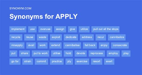 Web synonyms for apply in english: Web find 3,340 synonyms for apply and other similar words that you can use instead based on 22 separate contexts from our thesaurus. Synonyms for apply from random house roget's college thesaurus, revised and. Relate, pertain, refer, affect, involve, bear, touch, appertain; Play, fool around, idle, trifle, dawdle, fiddle. Request, seek, appeal, put in, petition, inquire, solicit, claim, sue, requisition,. Relating, pertaining, referring, concerning, involving, affecting, appertaining, connecting;