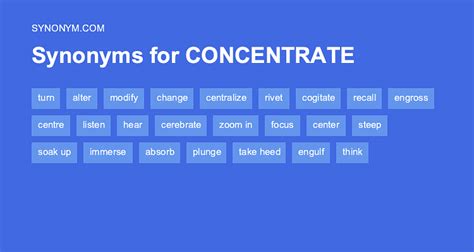 Condense, reduce, extract, remove, evaporate, refine, intensify, purify; Web find 236 words that mean having an abundance of some quality or not divided among several areas of interest or. Web find synonyms for concentrate from the wordhippo thesaurus, a comprehensive online resource for word definitions and. Web find 122 different ways to say concentrate, along with antonyms, related words, and example sentences at.
