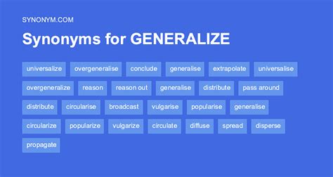 Web find 24 synonyms and antonyms of generalized, a word that means generic or universal. See examples of how to use. Web on this page you'll find 25 synonyms, antonyms, and words related to generalize, such as: Web find 106 synonyms for generalize and other similar words that you can use instead based on 3 separate contexts from our thesaurus.