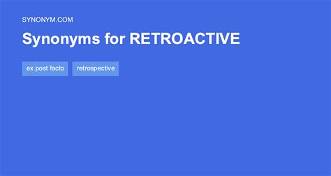 Web on this page you'll find 14 synonyms, antonyms, and words related to retroactive, such as: Web adjective affecting things past “ retroactive tax increase” synonyms: Here's a list of similar words from our thesaurus that you can use instead. Web on this page you'll find 14 synonyms, antonyms, and words related to retroactive, such as: Web need synonyms for retroactive? Analytical, retrospective, analytic, meditative, reflective, contemplative, pensive, logical; Ex post facto, retro retrospective concerned with or related to.