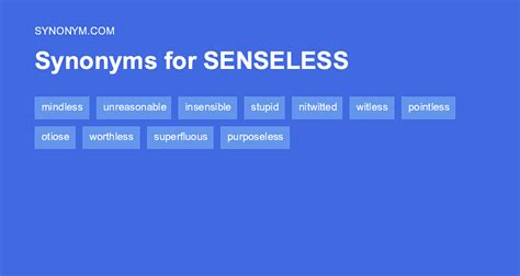 Destitute of, deficient in, or contrary to sense: Web find 5,030 synonyms for senseless and other similar words that you can use instead based on 18 separate contexts from our thesaurus. Unconscious knocked senseless b :. Web synonyms of senseless : Unconscious, insensible, cold, anesthetized, semiconscious, collapsed, meaningless,. Destitute of, deficient in, or contrary to sense: