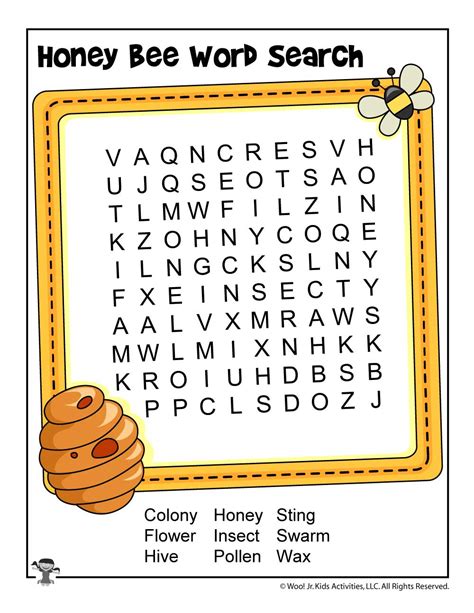 The Honey Bee Word Search WordMint