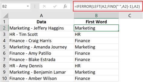 First Word Formula Excel. The left function works well but you can also do the same without a formula. How to extract first word from cell.