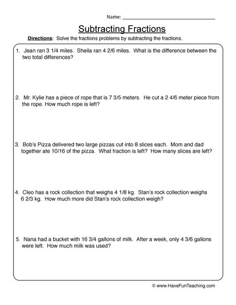 Fraction Subtraction Word Problems. Web find the difference between fractions, whole numbers, and mixed numbers with these printable worksheets for grade 3 through. Web subtracting fractions word problems arise in many situations.