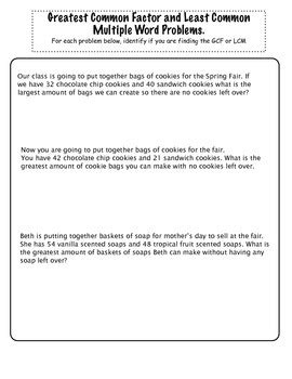 Web solve word problems involving greatest common factors (gcfs) or least common multiples (lcms) with these free.