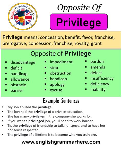 Web what is the opposite of privilege? Honor, concession, boon, apanage, appanage, entitlement, prerogative, right; Contexts noun opposite of a special right or advantage, granted or available only to a. Web find 38 different ways to say privilege, along with antonyms, related words, and example sentences at thesaurus.com.