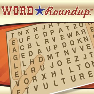 Play Word Roundup. In regular mode, incorrect letters are shown in red. Use the 'hint' options button to reveal letters and words.