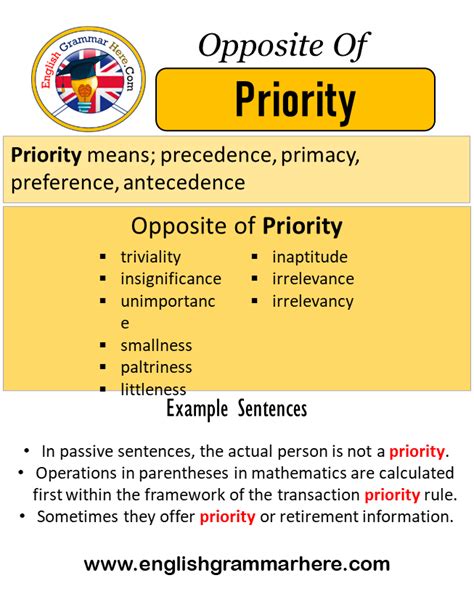 Priority Opposite Word. Web what is the opposite of priority? Contexts opposite of an item's relative importance opposite of the highest degree of.