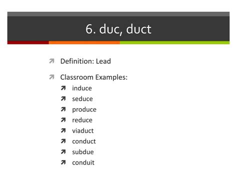 Vocabulary Development with Latin and Greek Root Words Duc = Lead
