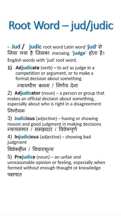 Root Word For Jud. Watch the prefix carefully before you decide on the meaning of a. Web judge click the card to flip π a person chosen to interpret laws, decide on a winner, or settle a controversy click the card to flip π 1 / 8.