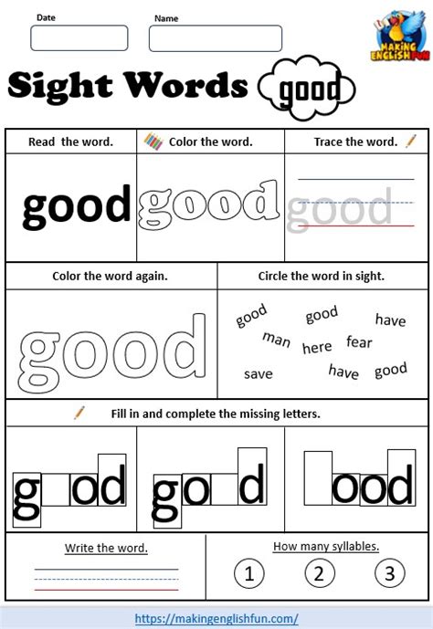 Web learn the sight word good. Web help your child/students learn to read fast by practicing sight word good in this reading video. Cut out the letters in the word good and glue them in the correct spaces on the worksheet. Learn how to spell good, find the missing letters and put the letters in the correct.