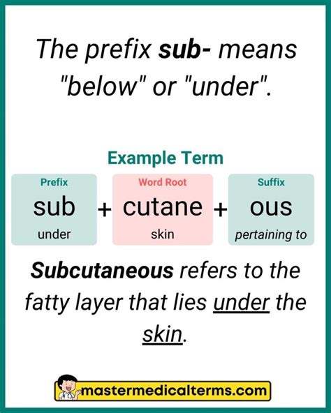 The meaning of subcutaneous is being, living, occurring, or administered under the skin. Web 54 rows this is a list of roots, suffixes, and prefixes used in medical terminology, their meanings, and their etymologies. The meaning of subcutaneous is being, living, occurring, or administered under the skin.