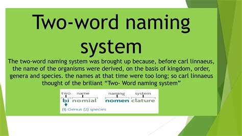 Two Word Naming System. The first word is the generic epithet and describes the genus that an animal belongs to. Web carolus linnaeus, a swedish botanist of the 18th century, came up with a simple solution, the.