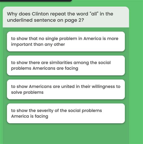 In the underlined sentence on page 2, clinton repeats the word all to show that no single problem in. Sanders is the protest candidate, listing. In the underlined sentence on page 2, clinton repeats the word all to show that no single problem in.