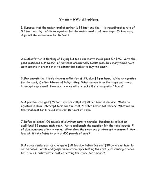 Y Mx B Word Problems Answer Key. Suppose the sample consisted of n=100 people. Web choose at least one problem type below.